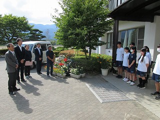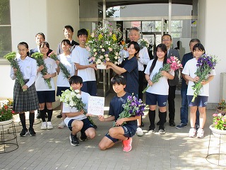 生徒会役員の皆さんを中心に、3年生の代表生徒がお昼休みにJAの皆様からお花を拝受いたしました。