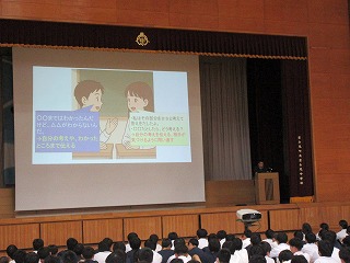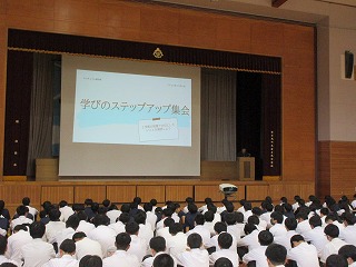 今日は、掃除の時間に代えて「学びのステップアップ集会」が開催されました。