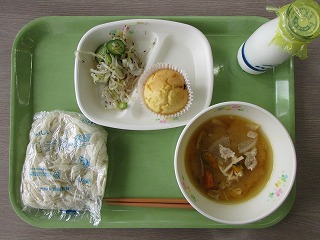 今日はデザートとして、チョコチップマフィンが出していただきました。小麦粉や砂糖などの甘さもありましたが、チョコチップのほろ苦さもあり、バランスのとれた風味となっていました。授業などで疲れた頭や体を癒してくれる、ありがたいデザートでした。