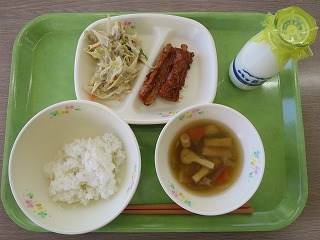 なお、本日は「かみかみ献立」ということで、ちくわ、こんにゃく、根菜類など、よく噛んで食べる食材がたくさん出ました。よく噛むことにより唾液が分泌され、虫歯予防や消化をよくするなどの効果が期待できます。しっかり噛んで食べ、自分の健康を意識することができているとよいのですが。