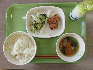 具だくさんみそ汁は、だいこん、にんじん、じゃがいも、ごぼう、こんにゃく、小松菜を、2種類の味噌や煮干しで味をつけた汁に入れて作られました。野菜がたくさん入っているので、さまざまな栄養をバランスよくとることができました。特に、じゃがいもはホクホクとしており食べ応えがありました。