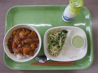 カレーライスは、3種類のカレー粉を使った富士見中特製カレーです。食べてみての率直な感想は、「辛いけどうまい」です。辛い食べ物が苦手な人は、汗がにじむほどの辛さだったかもしれません。しかし、豚肉、にんじん、じゃがいもなどの具材のおいしさが際立っており、すべての人が満足するカレーだったのではないでしょうか。