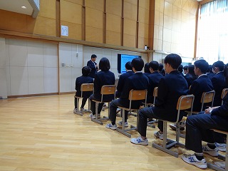 また、5時間目には進路講話があり、東海大学付属諏訪高等学校と帝京第三高等学校の先生にご来校いただき、お話をしてくださいました。それぞれの高校の特徴などに加え、3年生へのアドバイスもいただきました。「高校に入ることはゴールではなくスタート」、「高校でしかできないことを探すために、今からしっかり勉強することが大切」など、多くの生徒に響いたのではないでしょうか。将来を見据え、今から行動していってほしいと願っています。