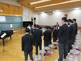 そのような中、今日は、当日講師を務めてくださる上諏訪中学校の牛越校長先生にご来校いただき、3年生全学級と2年生の1・2部の学級合唱のご指導をしていただきました。