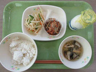 なお、今日と明日は、1-1が食育の授業で考えた「かみかみ献立」です。「鶏とごぼうのチーズ焼きは、ごぼうを追加することで噛み応えがアップするように」など、しっかり噛んで食べられるように考えてくれました。