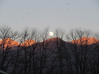 ふとよく見ると・・・西岳の上に白くて透き通るようなまん丸お月様が・・・。