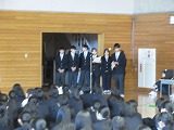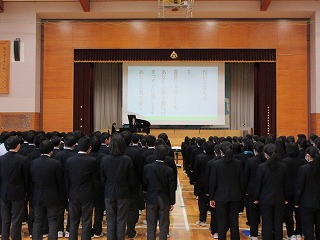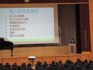 集会の最後は、生徒会長からの話。生徒集会での会長の話も最後の機会。