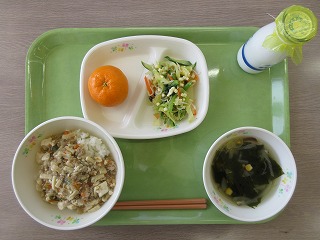 今日の給食の献立は、