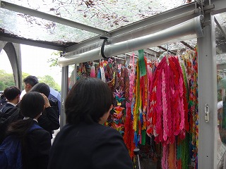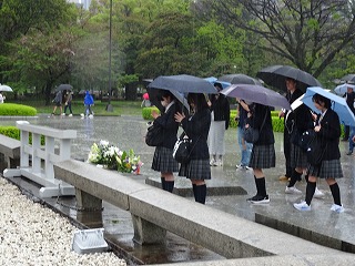 原爆の子の像では、被爆した禎子さんに思いを馳せながら作成してきた千羽鶴を奉納しました。