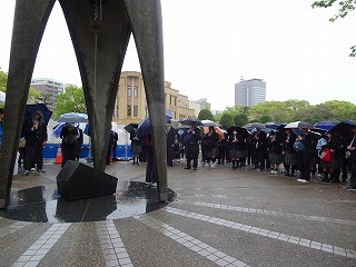 雨の中でしたが、学年全員で平和を願い黙とうしました。