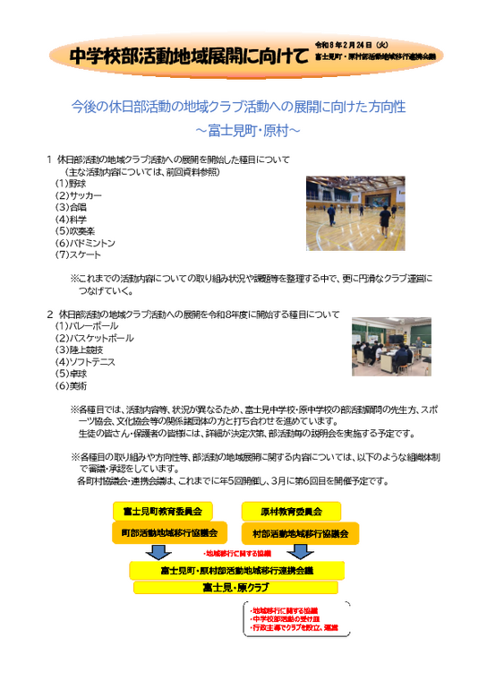 富士見町・原村部活動地域移行連携会議より部活動地域展開だよりが届きました。